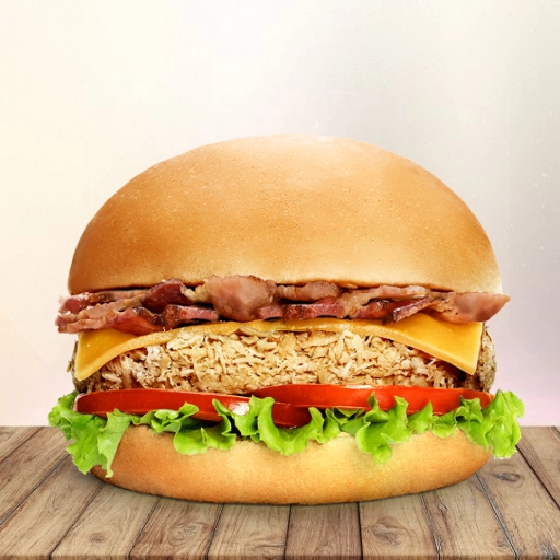 Pão, frango desfiado, bacon, mussarela, alface, Tomate, Milho e Batata Palha.